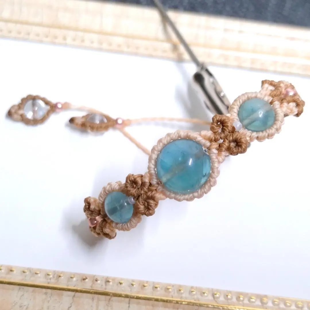#555マクラメブレスレット:ブルーアパタイト/オレンジムーン