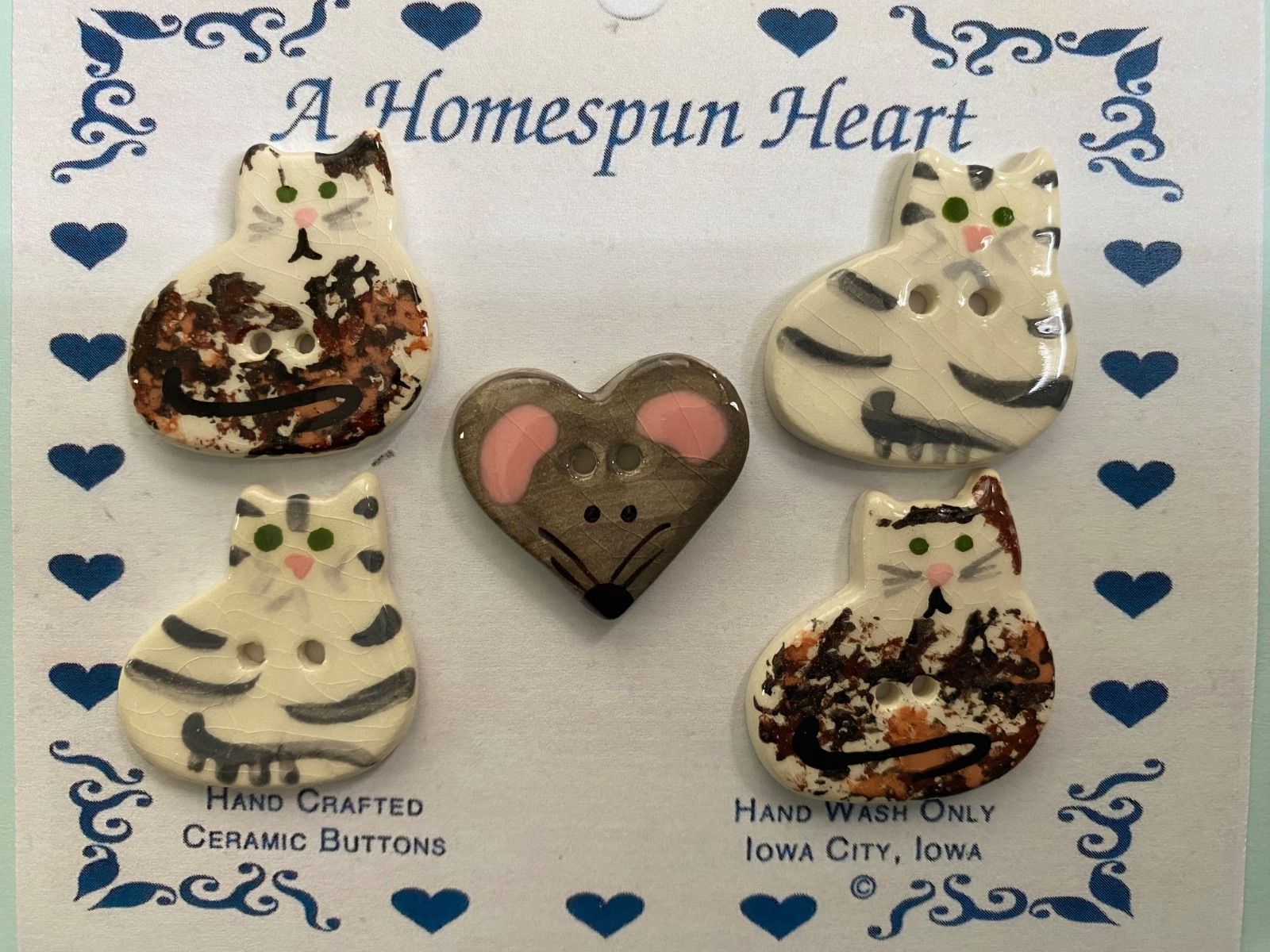 アメリカ製ハンドメイド陶器ボタン ネコとねずみ