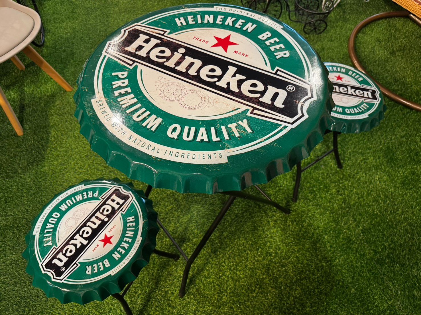 ボトルキャップ風 テーブル&チェア 3点セット ビールデザインモチーフ インダストリアル