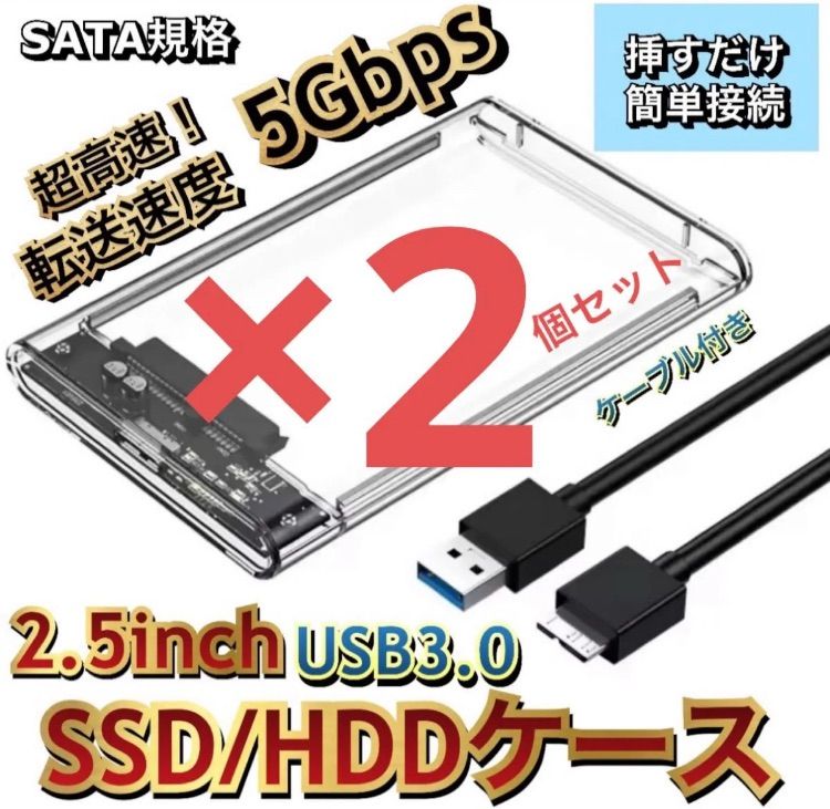 2.5インチ 外付けケース USB3.0 HDD SSDハードディスク パソコン Windows Mac SATA 高速転送 2個セット