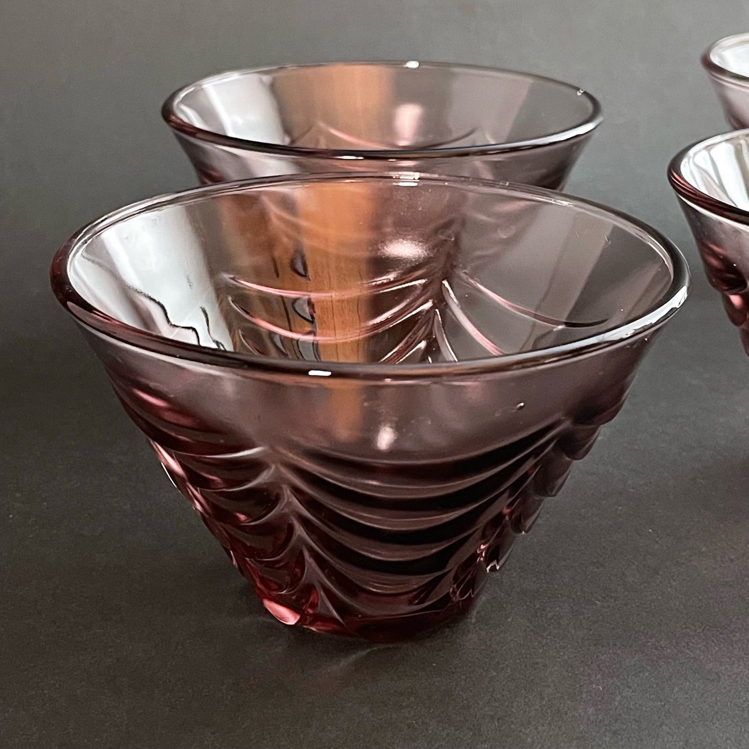アンティークガラス 紫ガラスの小鉢 サンデーカップ 5個セット 昭和レトロ デザートカップ