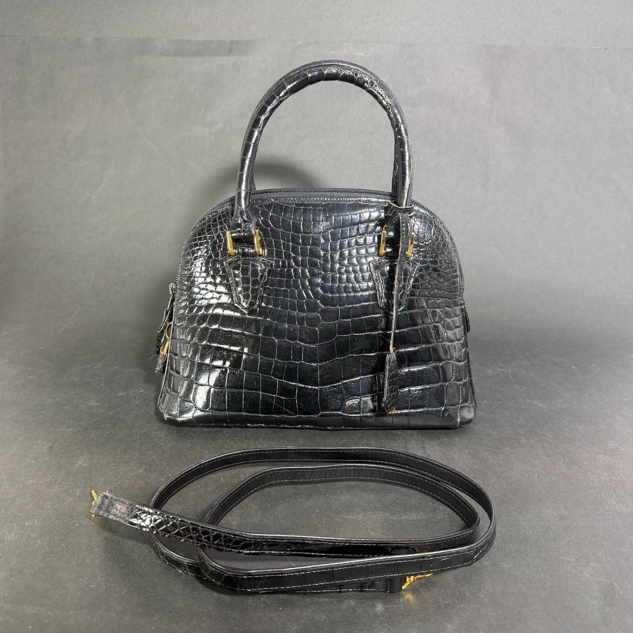 クロコダイル ハンドバッグ 日本製 最高級本革 ショルダーストラップ付