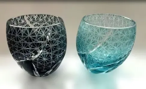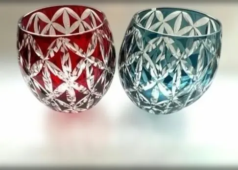 切子グラス 七宝つなぎ ダークグレー ペアグラス