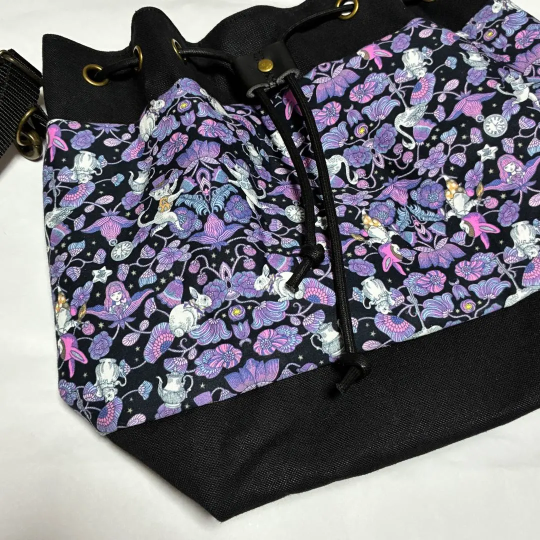 ジョリーフルール ハンドメイド ショルダー 巾着 鞄 バッグ 紫 黒