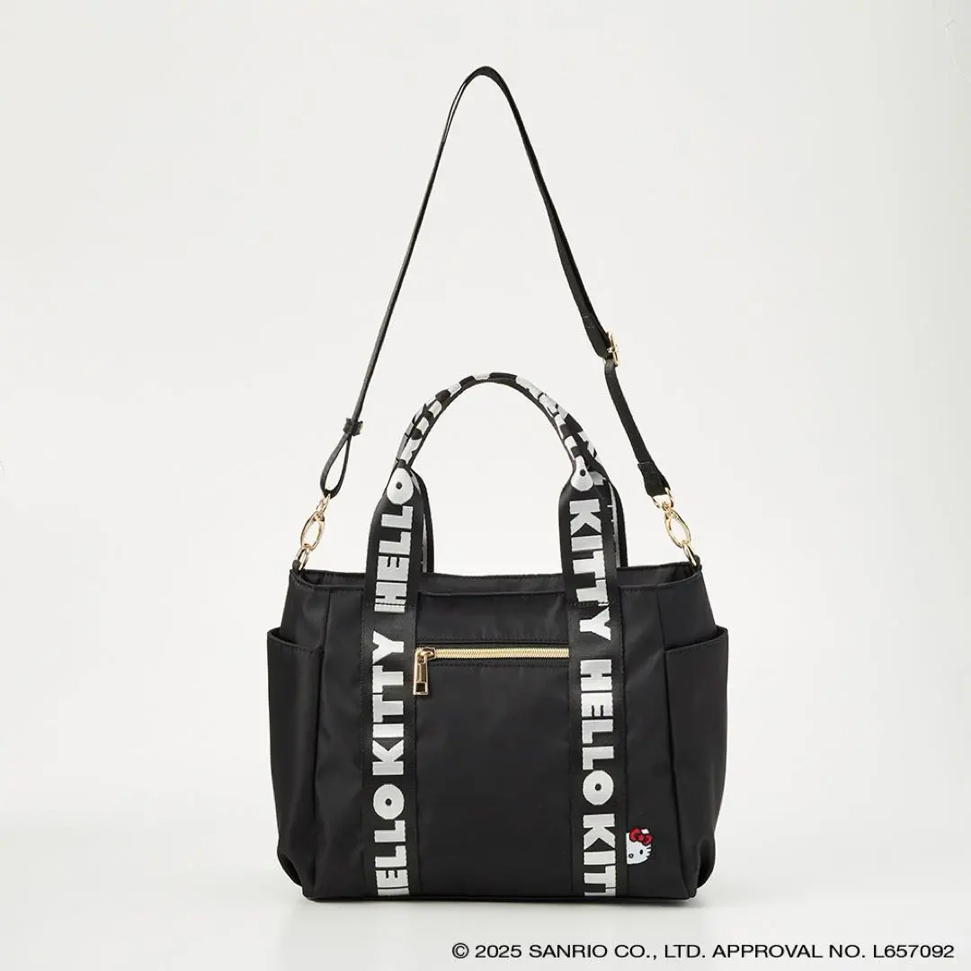 HELLO KITTY 通し手ヨコ型手提げ ナイロン 黒 ブラック