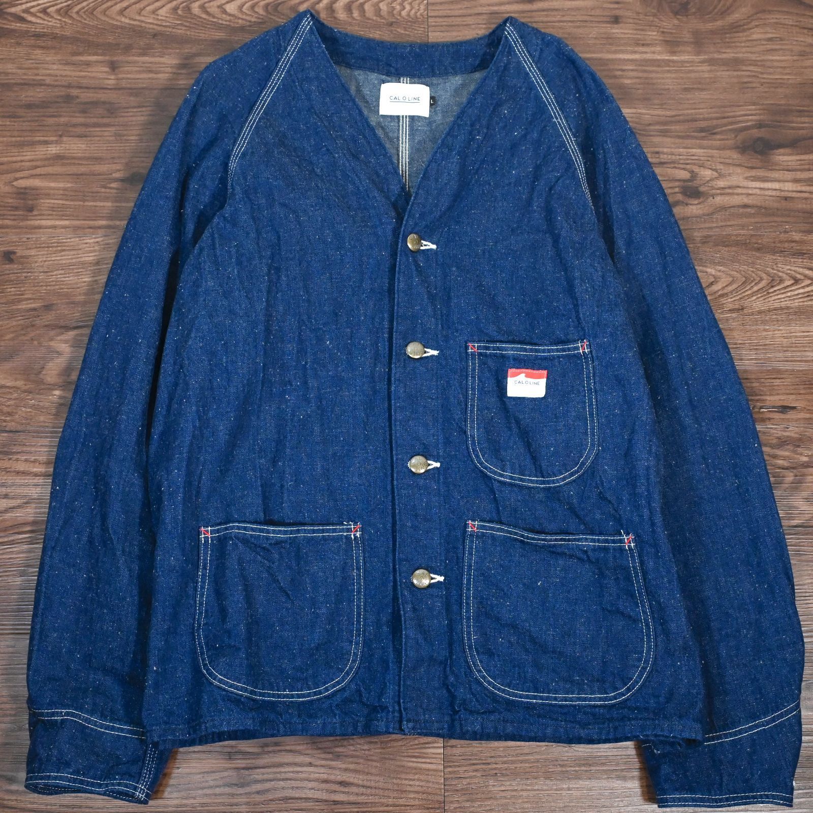 CAL O LINE キャルオーライン デニムジャケット エンジニアジャケット ノーカラージャケット 刺繍 アメカジ Lサイズ