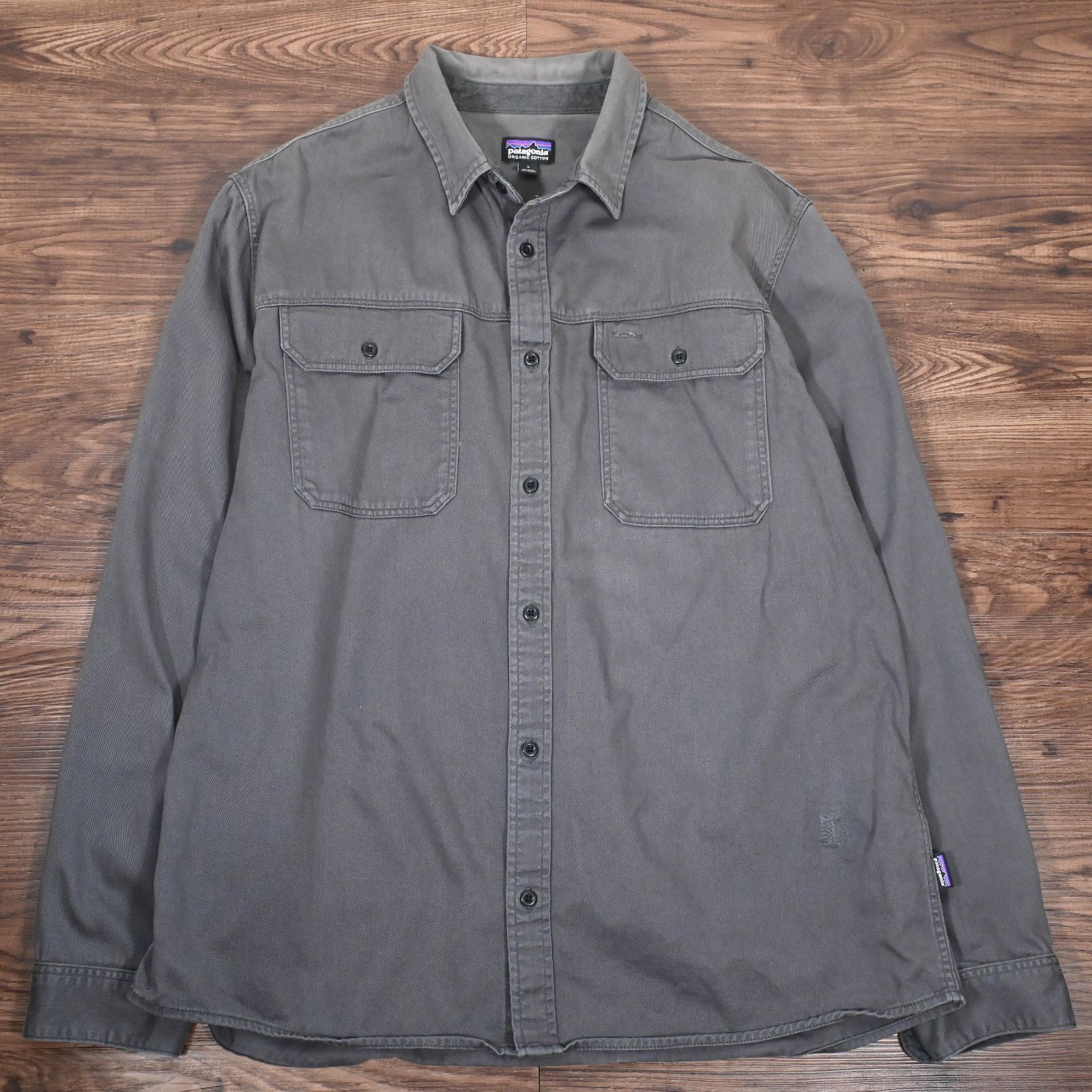 patagonia パタゴニア ワークシャツ 長袖シャツ グレー リペアあり アメカジ Lサイズ
