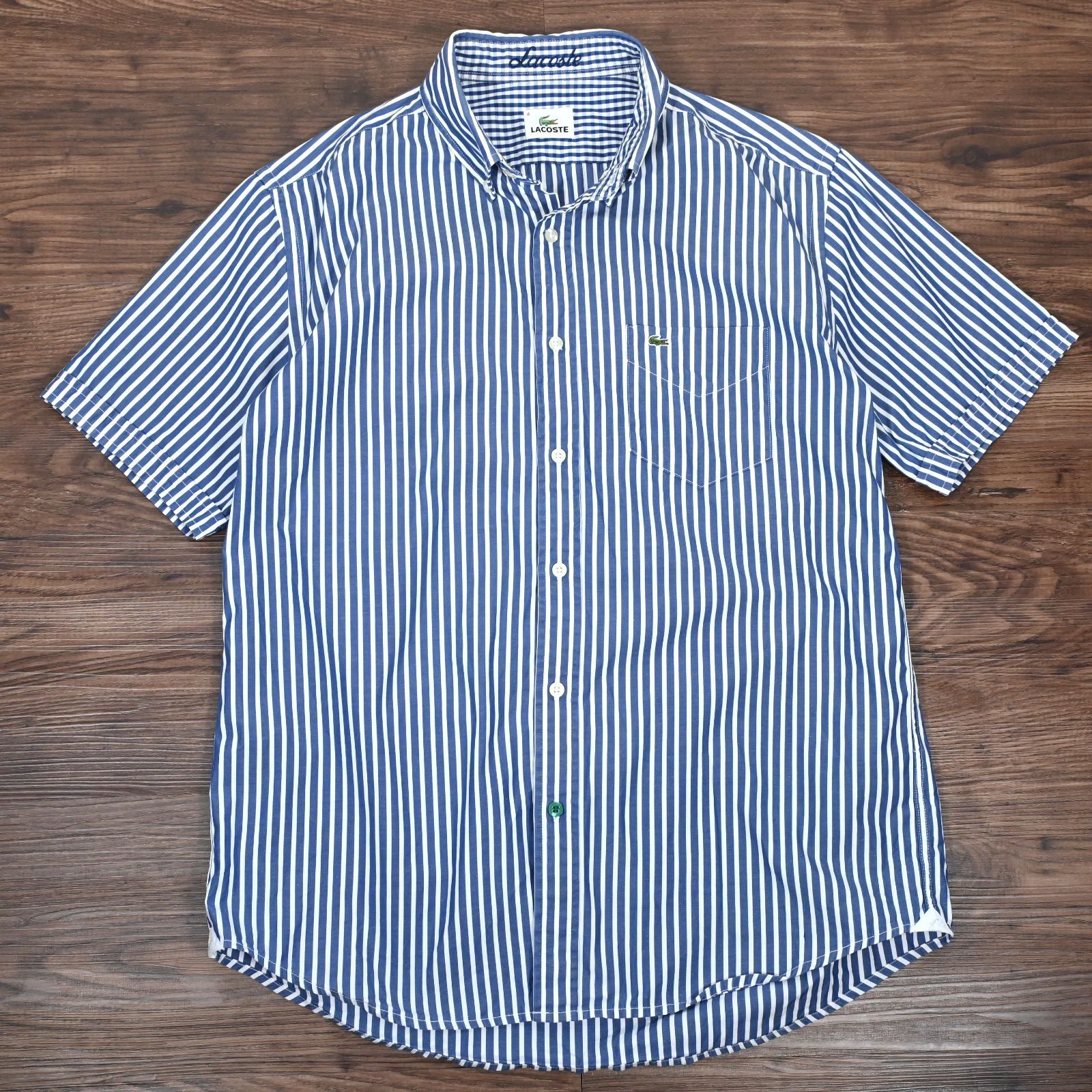 LACOSTE ラコステ 半袖シャツ 青白 ストライプ 刺繍 サイズ4(L相当)