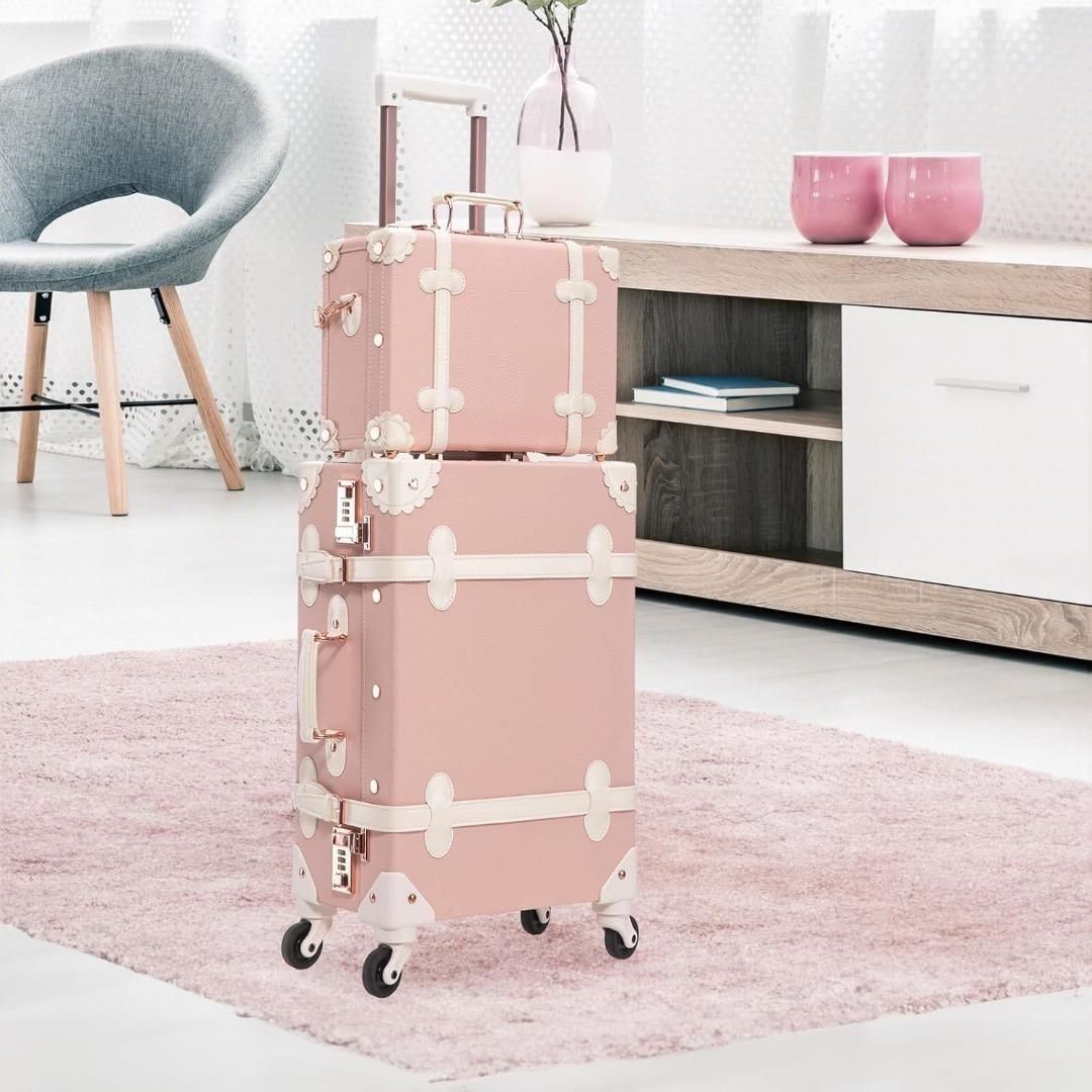 韓国風 可愛い スーツケース トランク風 2点セット ピンク 20・12 推し活