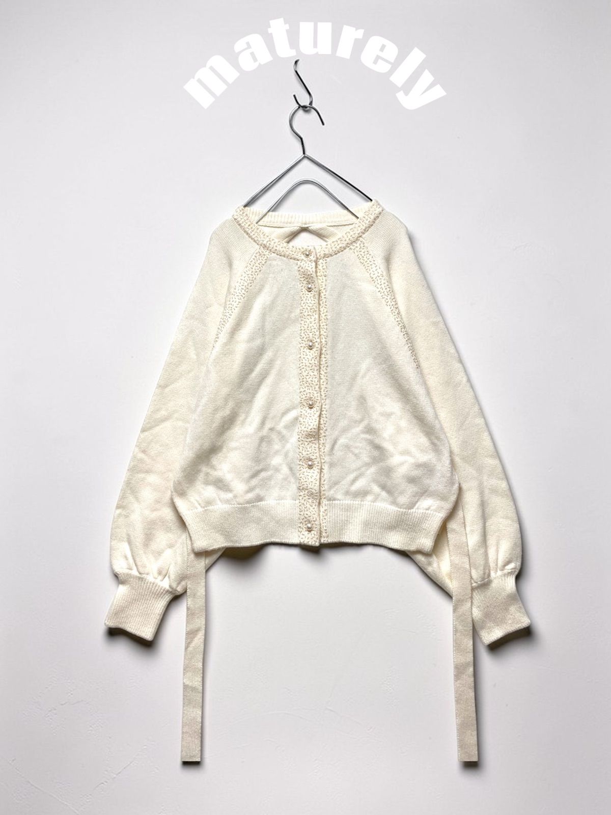 BEAMS BOY maturely / ビーズ エンブロイダリー バック オープン カーディガン