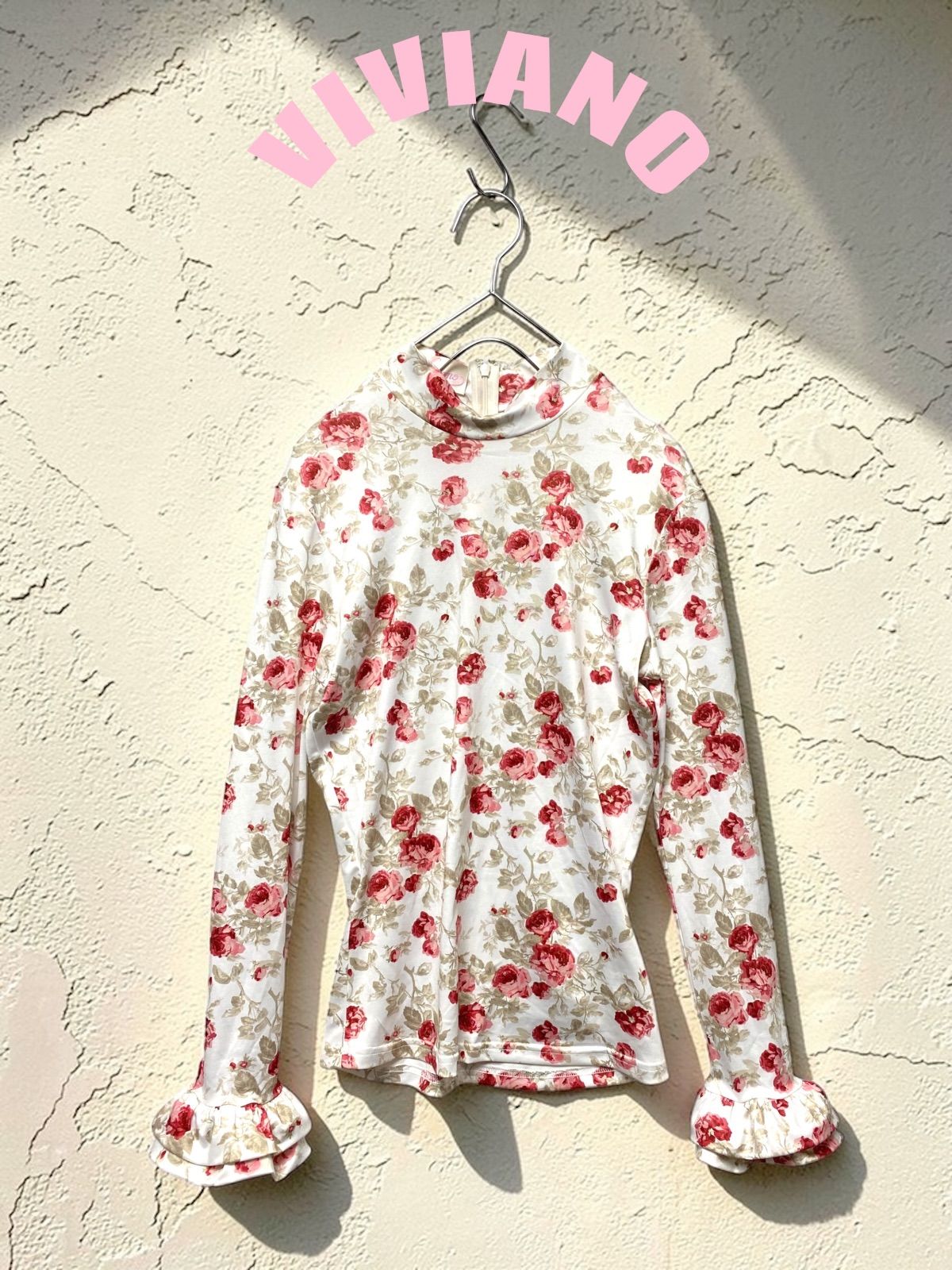 【25AW】VIVIANO RUFFLE ELASTIC TOP (FLORAL) フラワー ブラウス