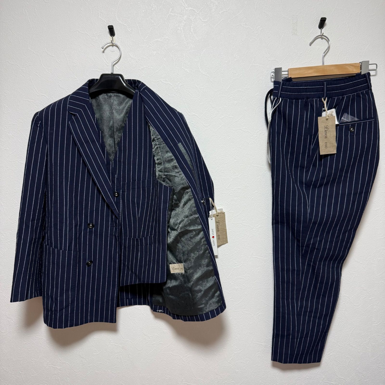 スーツカンパニー イージー スーツ ドローコード ネイビー ストライプ