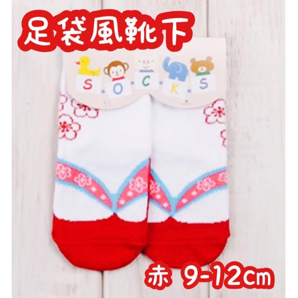 靴下 赤 9~12cm 足袋風 女の子 タビックス 草履柄