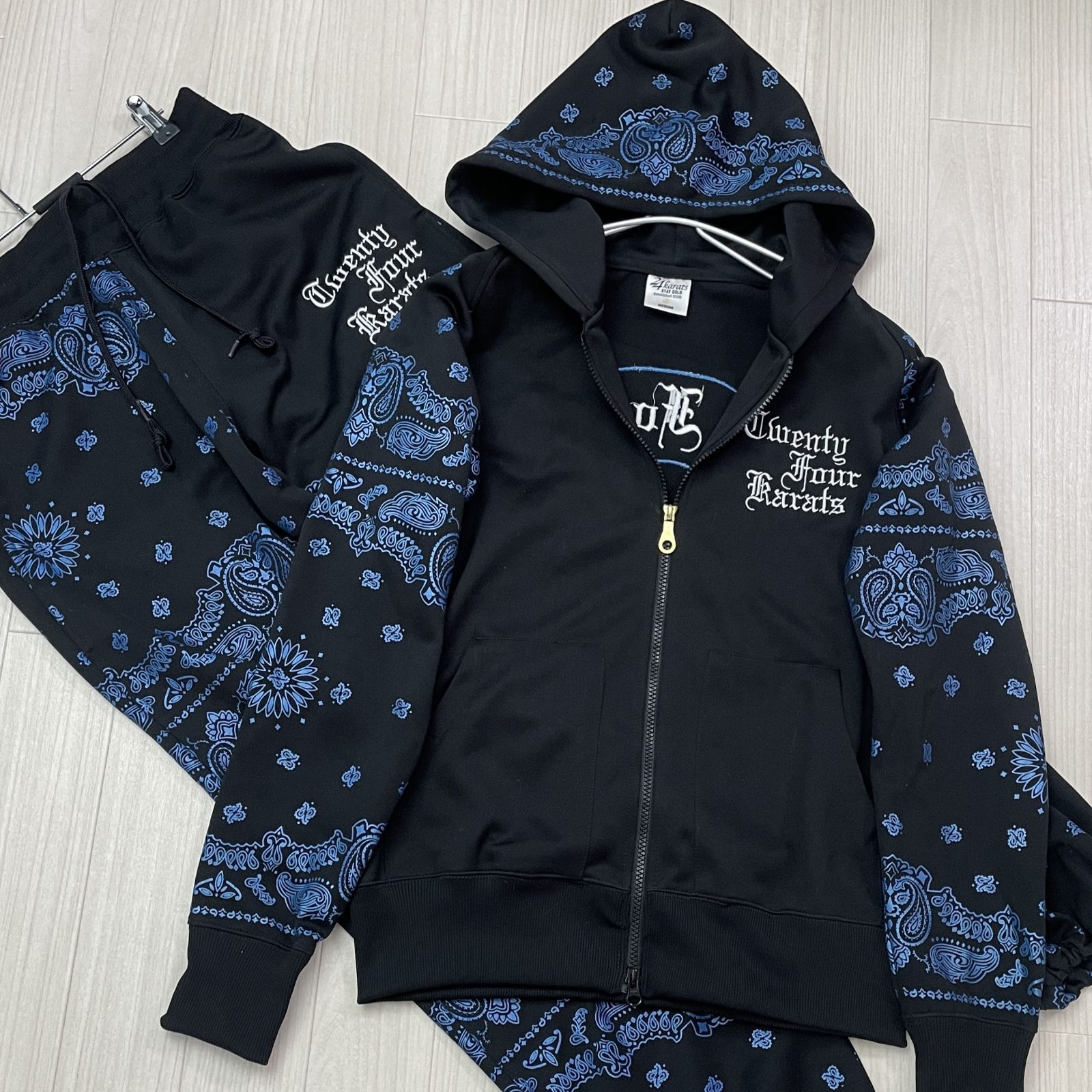 24カラッツ セットアップジャージ パーカー スウェット ズボン フード ペイズリー 長袖 秋冬~通年 M 黒 ブラック メンズM 24karats G0407