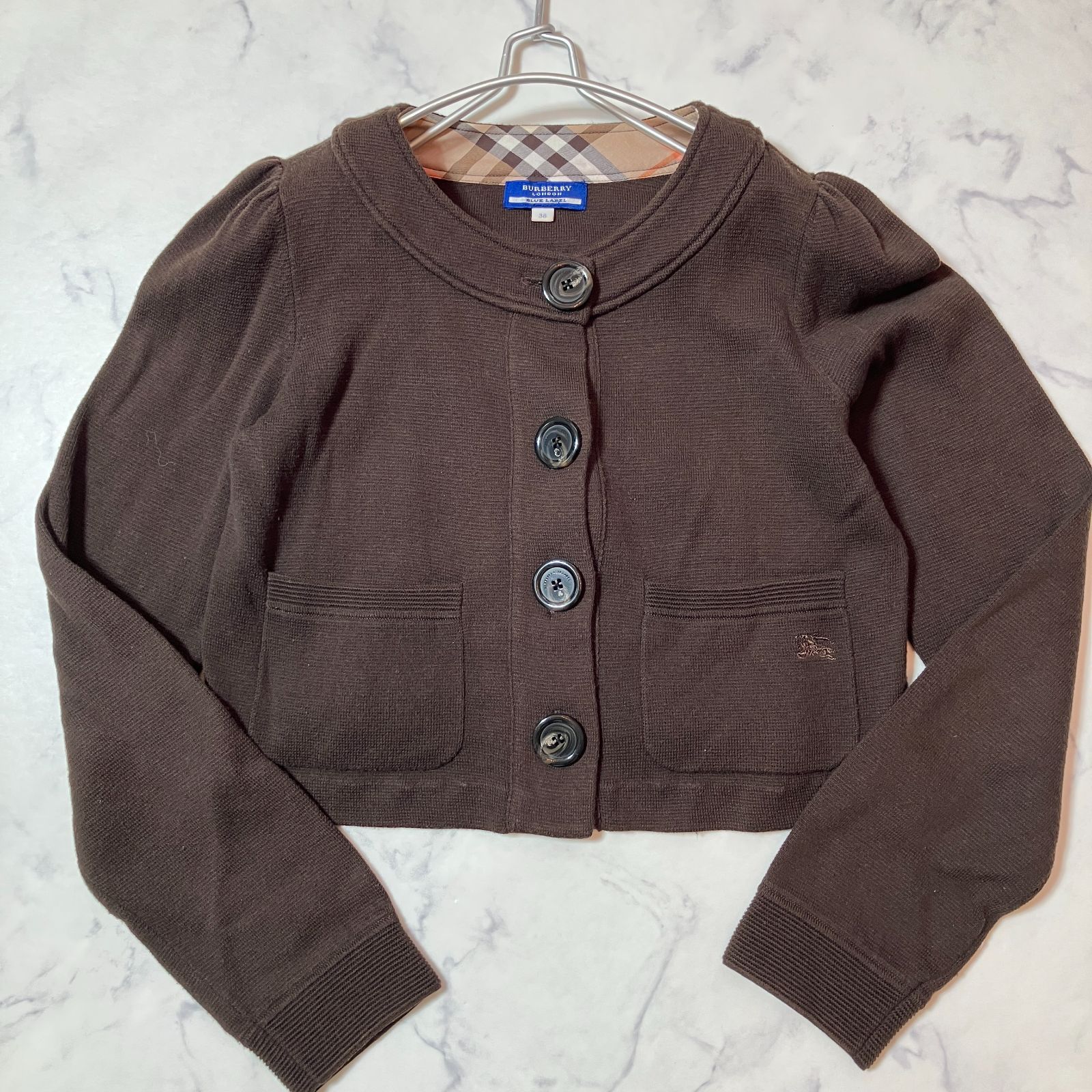 BURBERRY BLUE LABEL 長袖ショート丈ニットカーディガン ジャケット ノバチェック 茶色 ブラウン バーバリーブルーレーベル レディース R0112