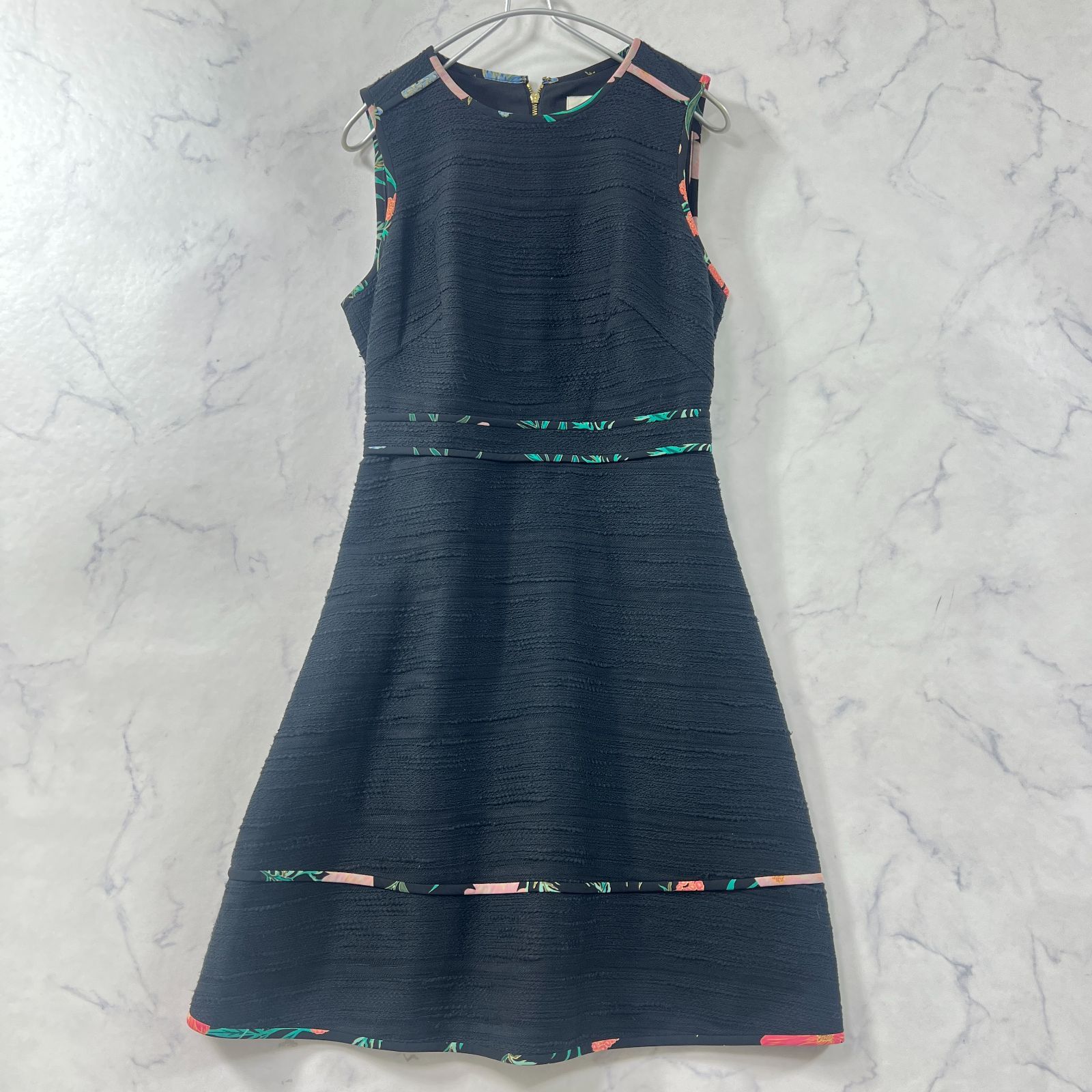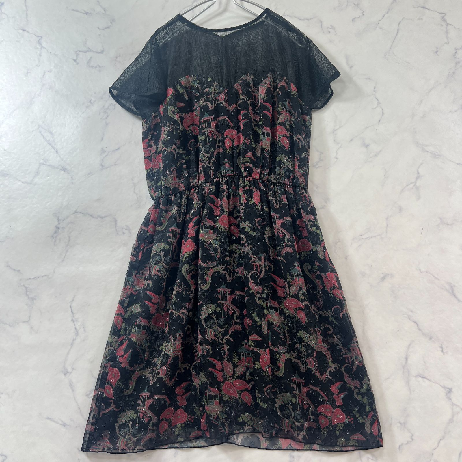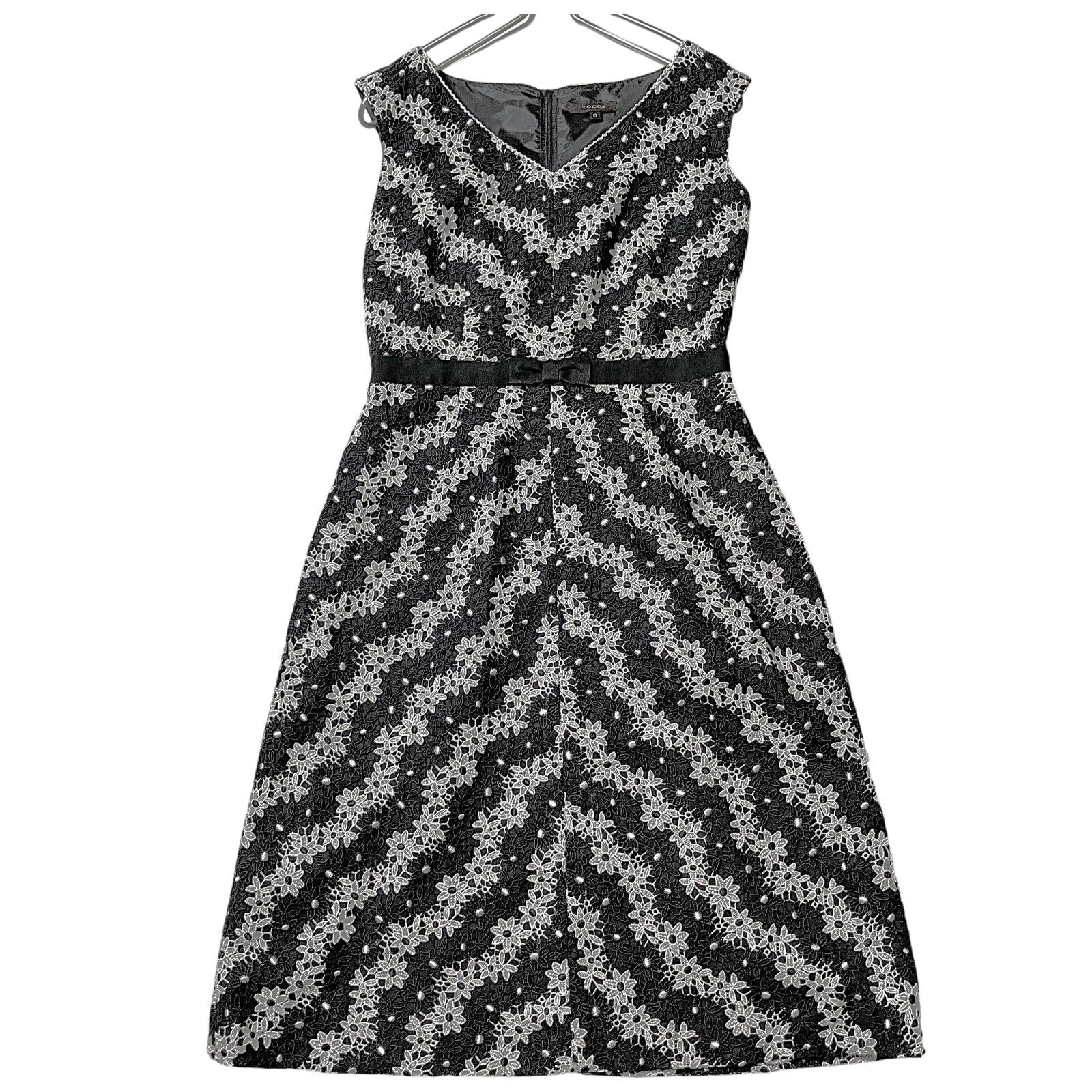 TOCCA 総レース刺繡ワンピース 花柄 リボン ノースリーブ M 黒 ブラック レディース R0108
