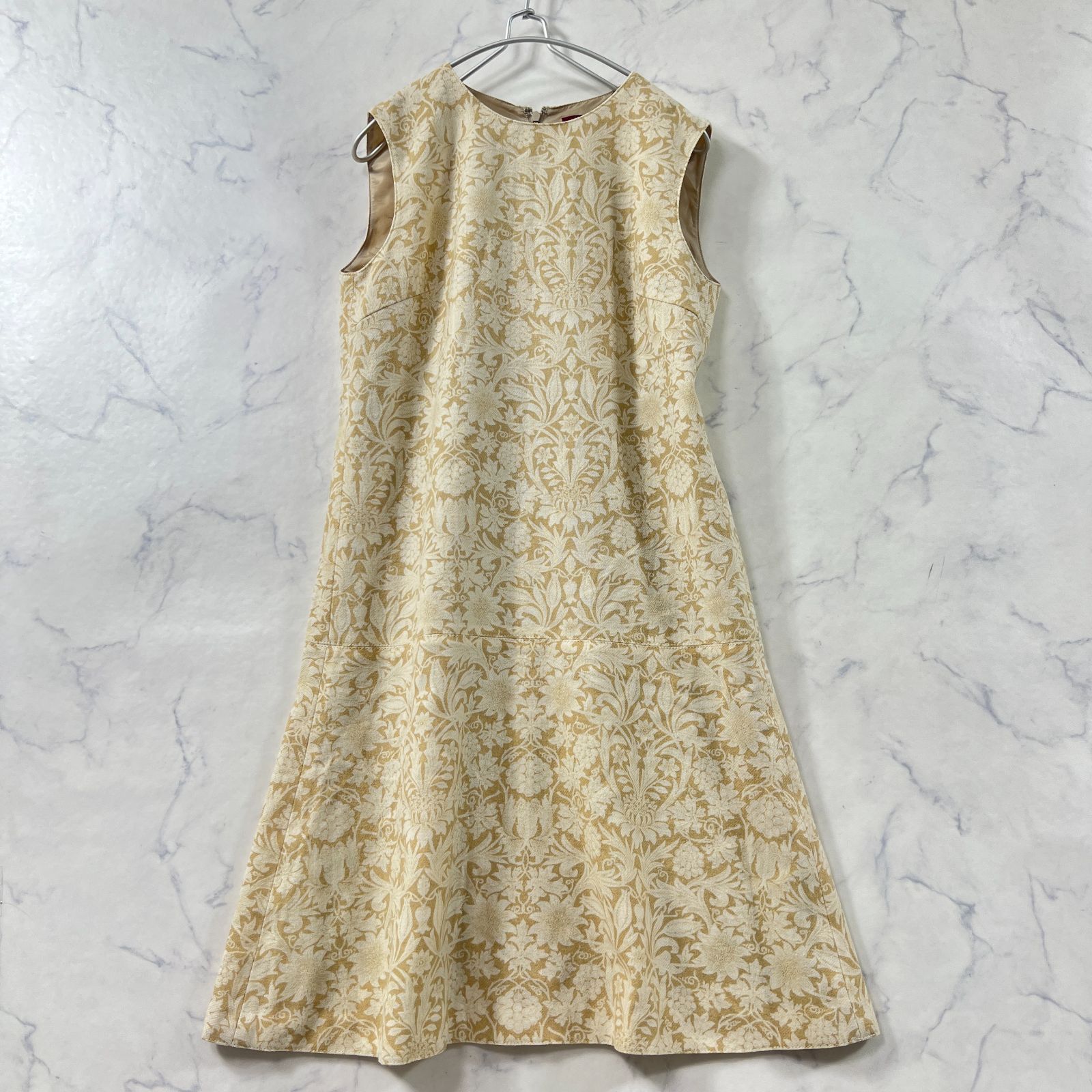 極美品 アマカ リバティワンピース ロング Aライン 花柄 ノースリーブ ベージュ AMACA レディース B2278