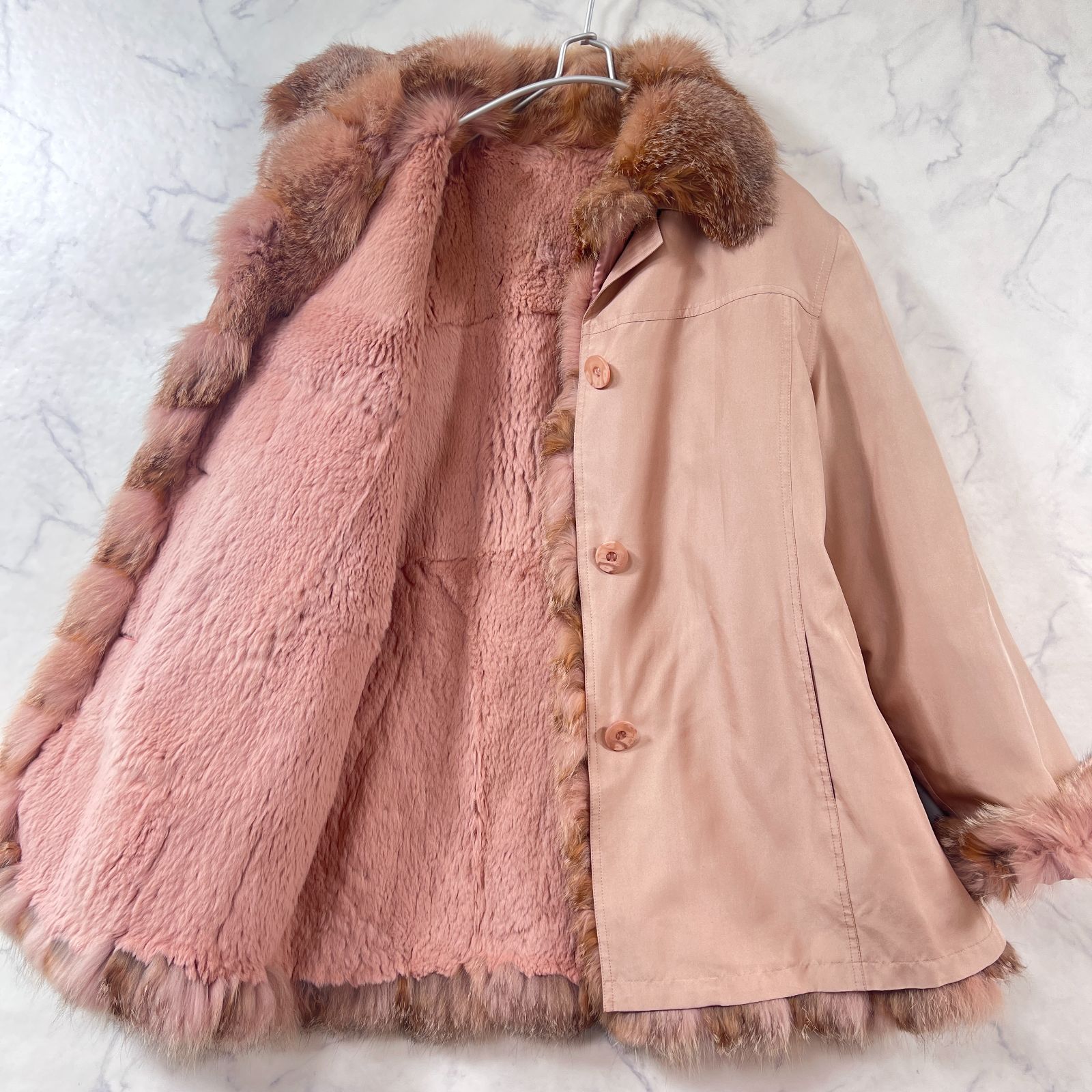 シルク100% 希少色 リアルファーコート フォックス かわいいピンク 長袖ライナー 2way レディース B2283