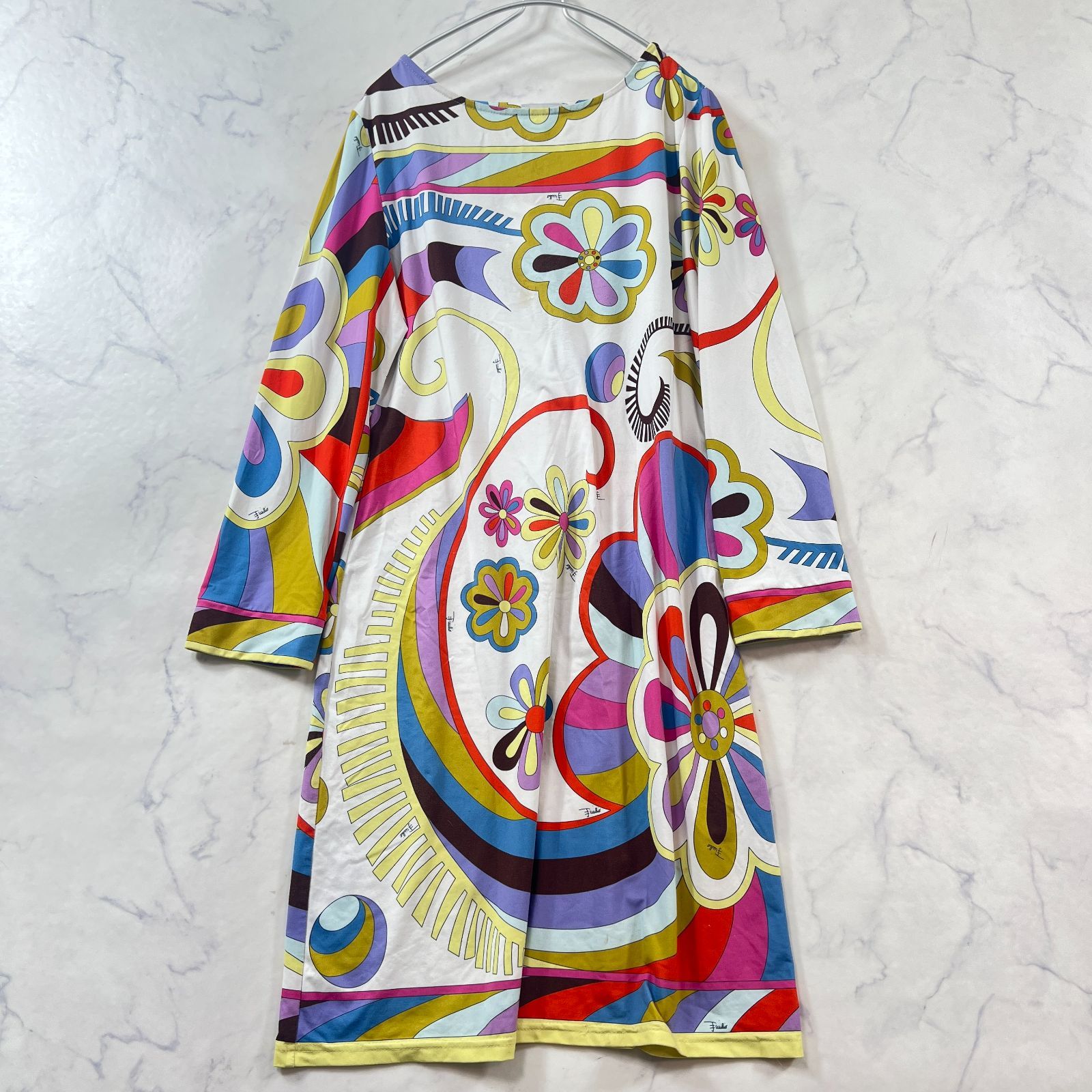 エミリオプッチ ロングワンピース 長袖 総柄 プッチ柄 ストレッチ 白 ホワイト EMILIO PUCCI レディース B2291