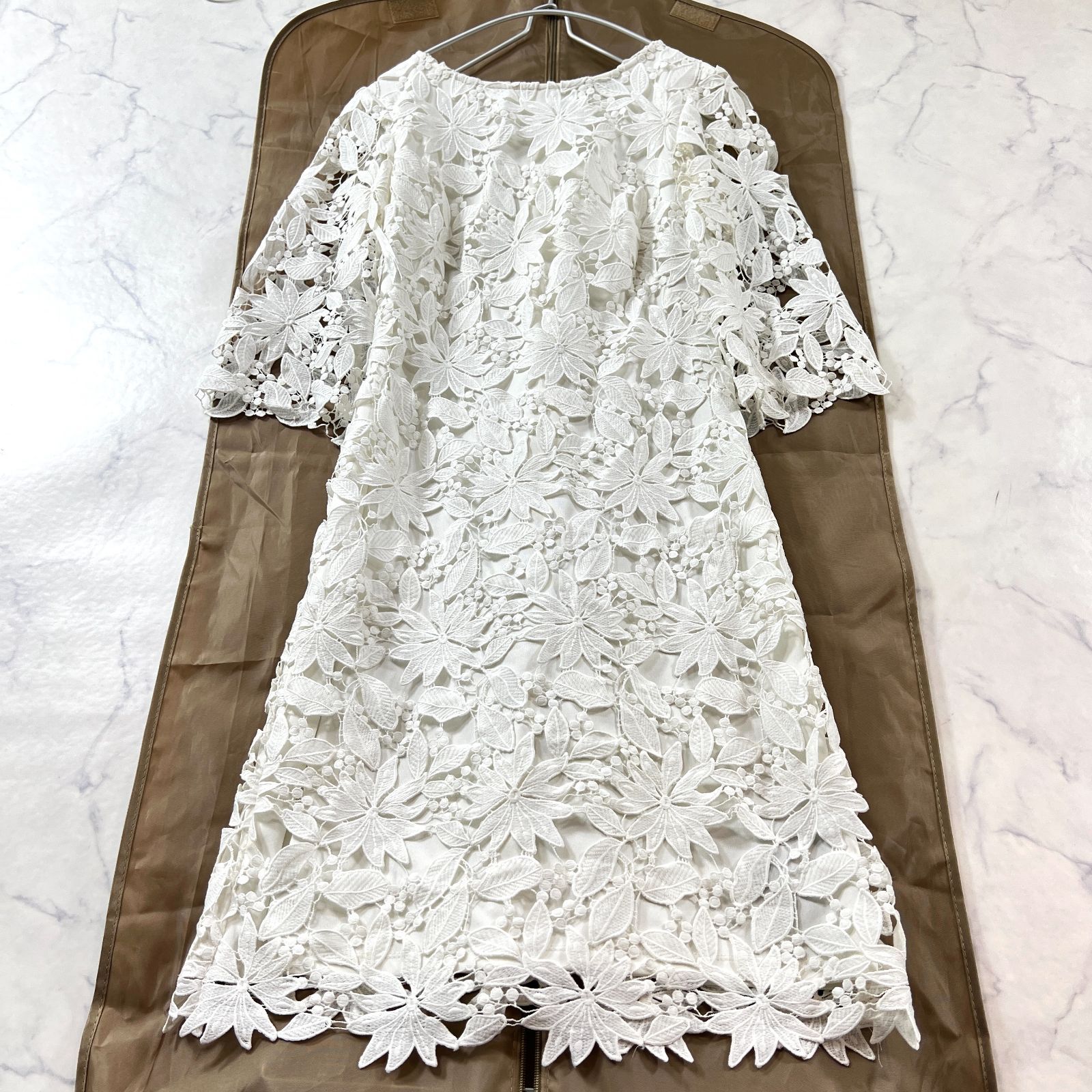 ローレンラルフローレン 花柄ワンピース ロング 総レース ラッセルレース 半袖 白 ホワイト LAUREN RALPH レディース B2295