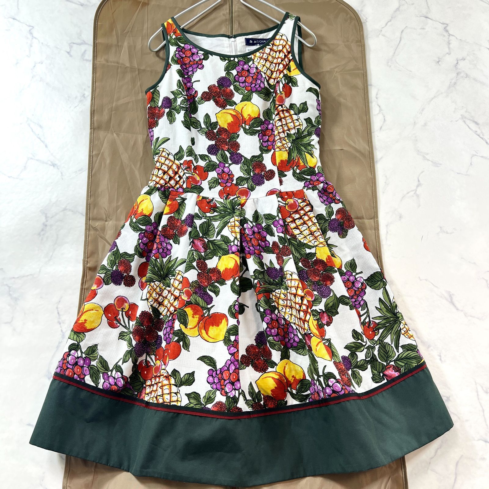 M エムズグレイシー フルーツ柄ワンピース ベルト ノースリーブ リボンベルト グリーン ' GRACY レディース B2298