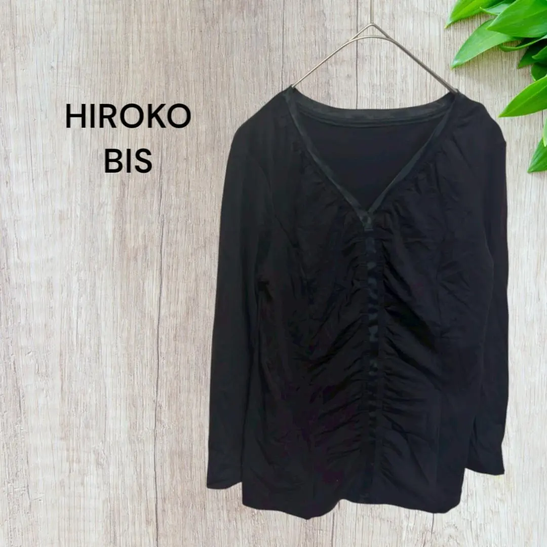 ヒロコビス カットソー トップス 長袖 シャーリング ギャザー フリル ブラック