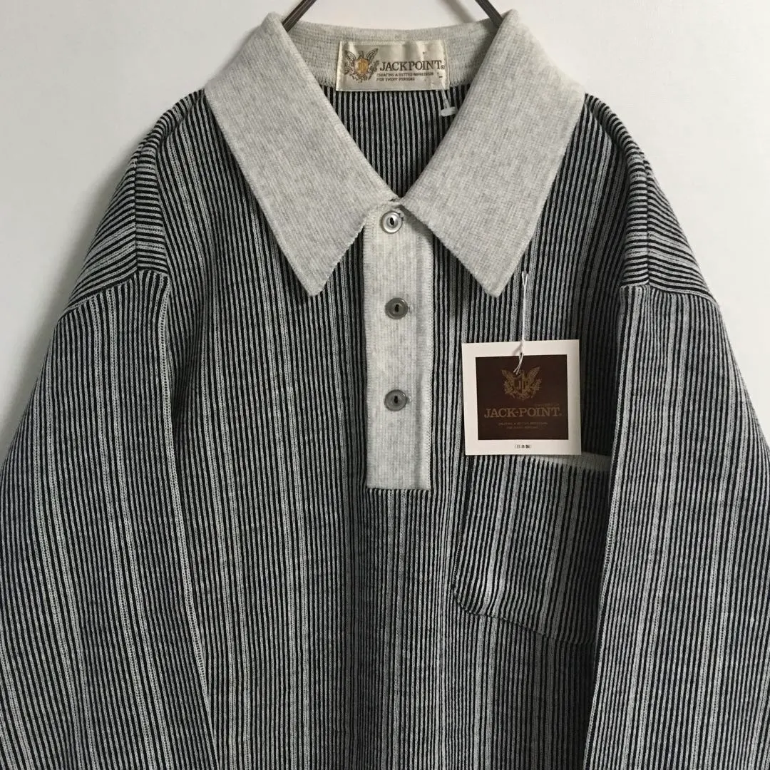 日本製 90s デッドストック 襟付きニット ストライプ ハーフボタン メンズL
