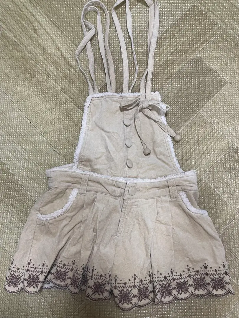 リズリサ ベージュ サロペットショートパンツ 2wey