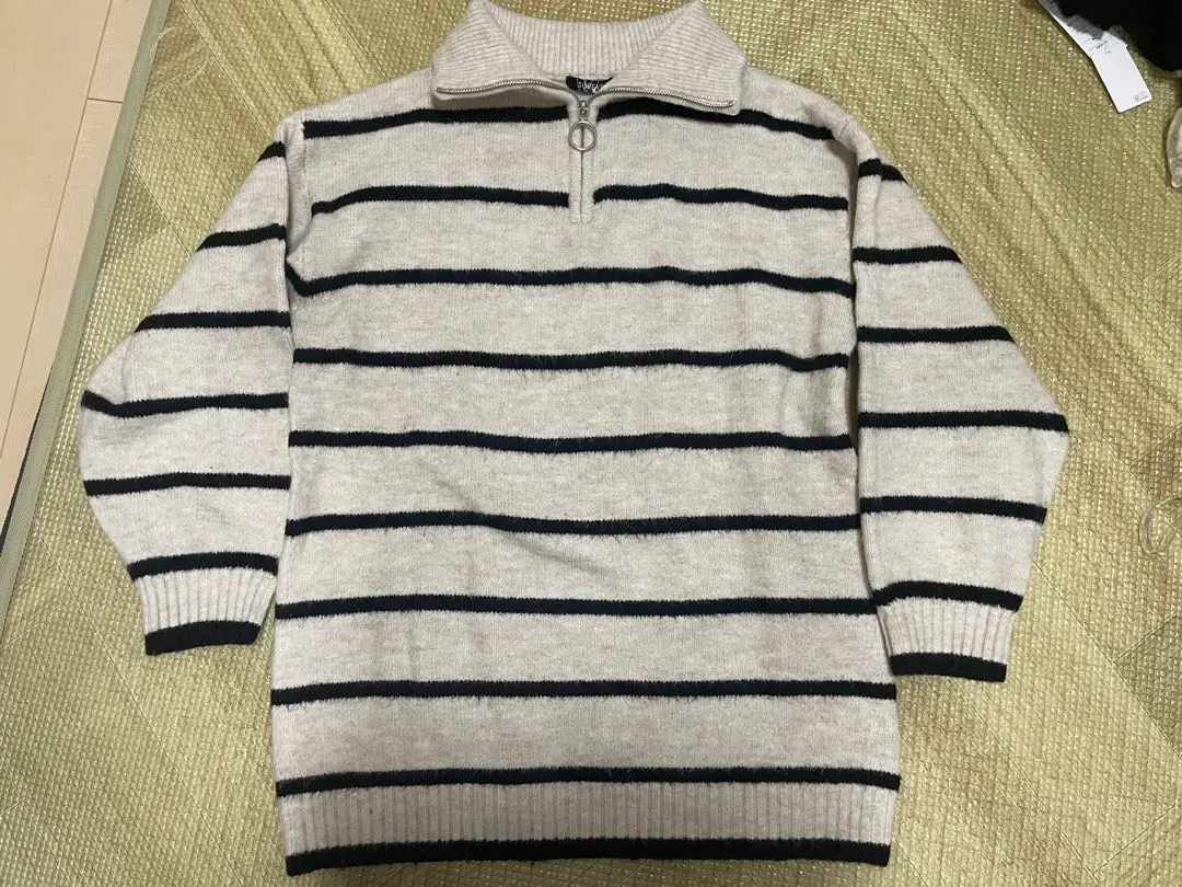 SEASON REASON 長袖セーター ホワイト×ネイビー