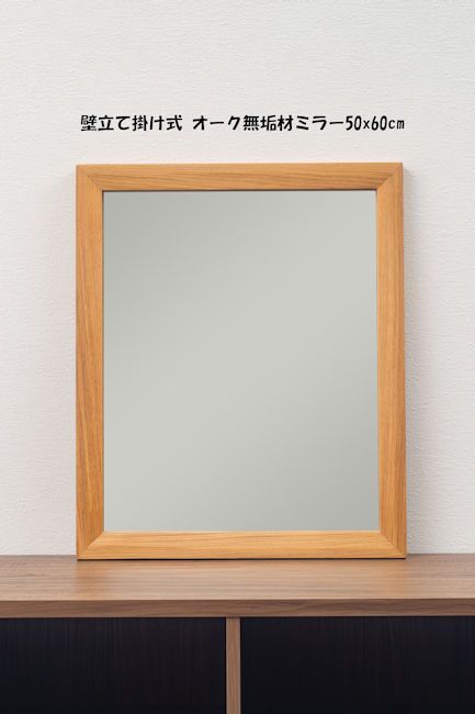 北欧風オーク無垢材 壁立て掛け式ミラー50x60cm 鏡 卓上ミラー(636)