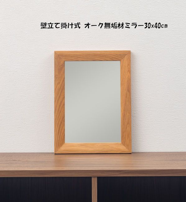 北欧風オーク無垢材 壁立て掛け式ミラー30x40cm 鏡 卓上ミラー(663)