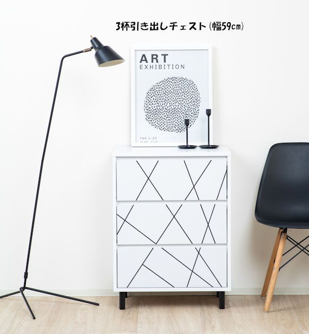3杯引き出しチェスト幅59cm タンス 韓国インテリア 幾何学(694)