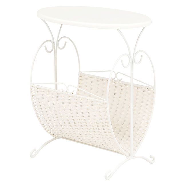 マガジンラック付サイドテーブル幅47cm ホワイト系 韓国インテリア(696)