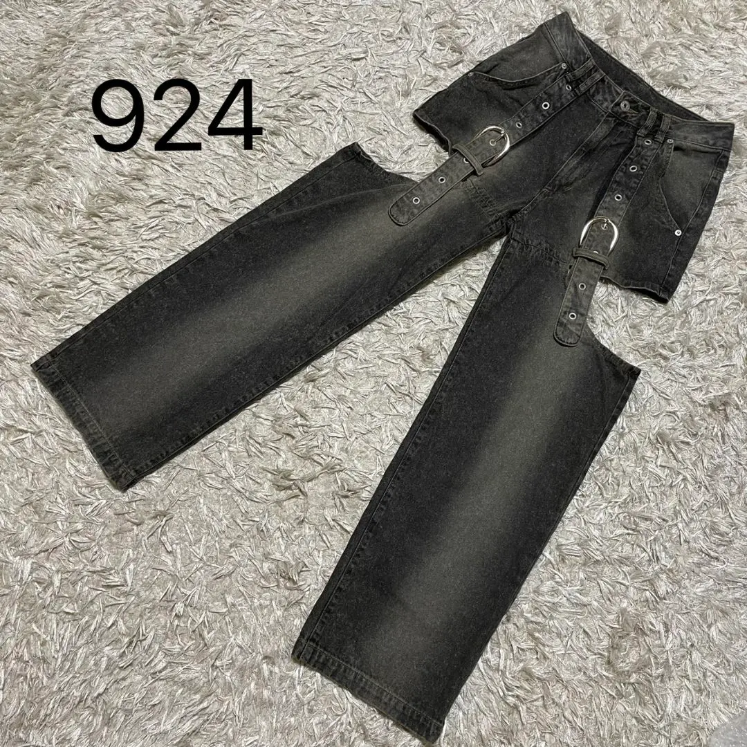 924*SPIRALGIRL ベルトデザインサイドカットデニム