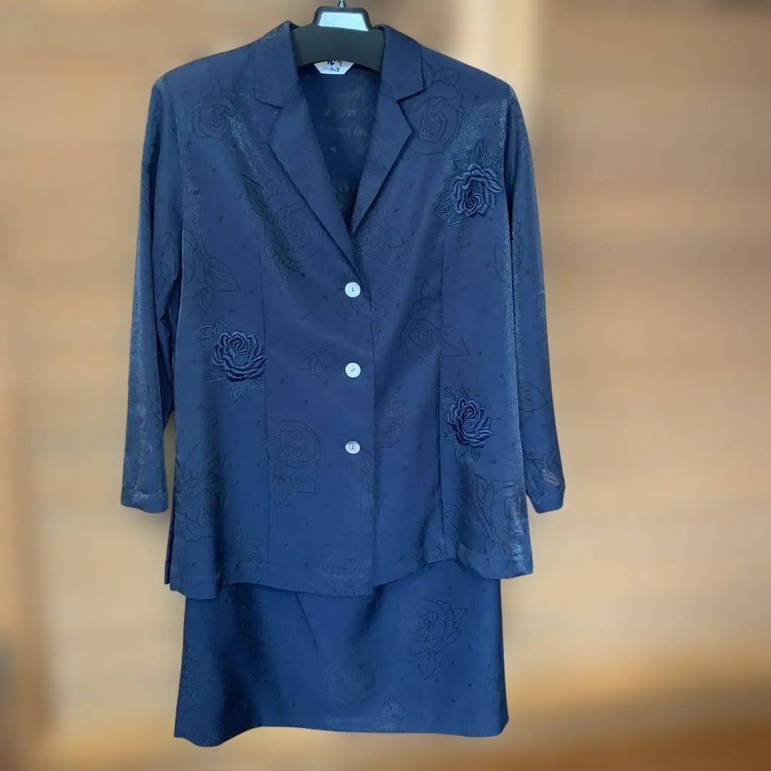ネイビー 花模様刺繍 スカートスーツ