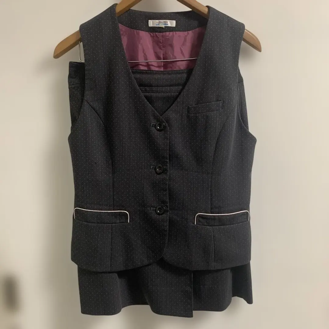 事務服ALPHA PIER ダークグレー ストライプ ベストスーツ