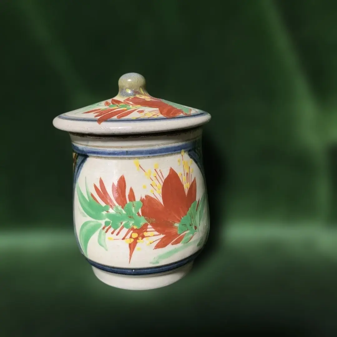 やちむん花柄 陶器製 蓋付き湯飲み