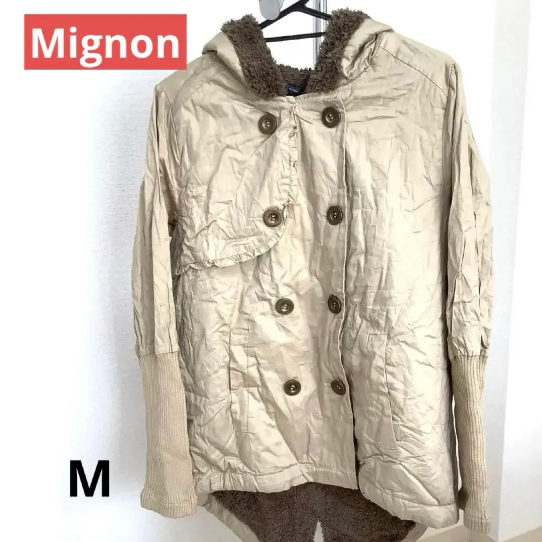 Mignon ベージュ コート M ダブルボタン ボア ジャンパー フード有