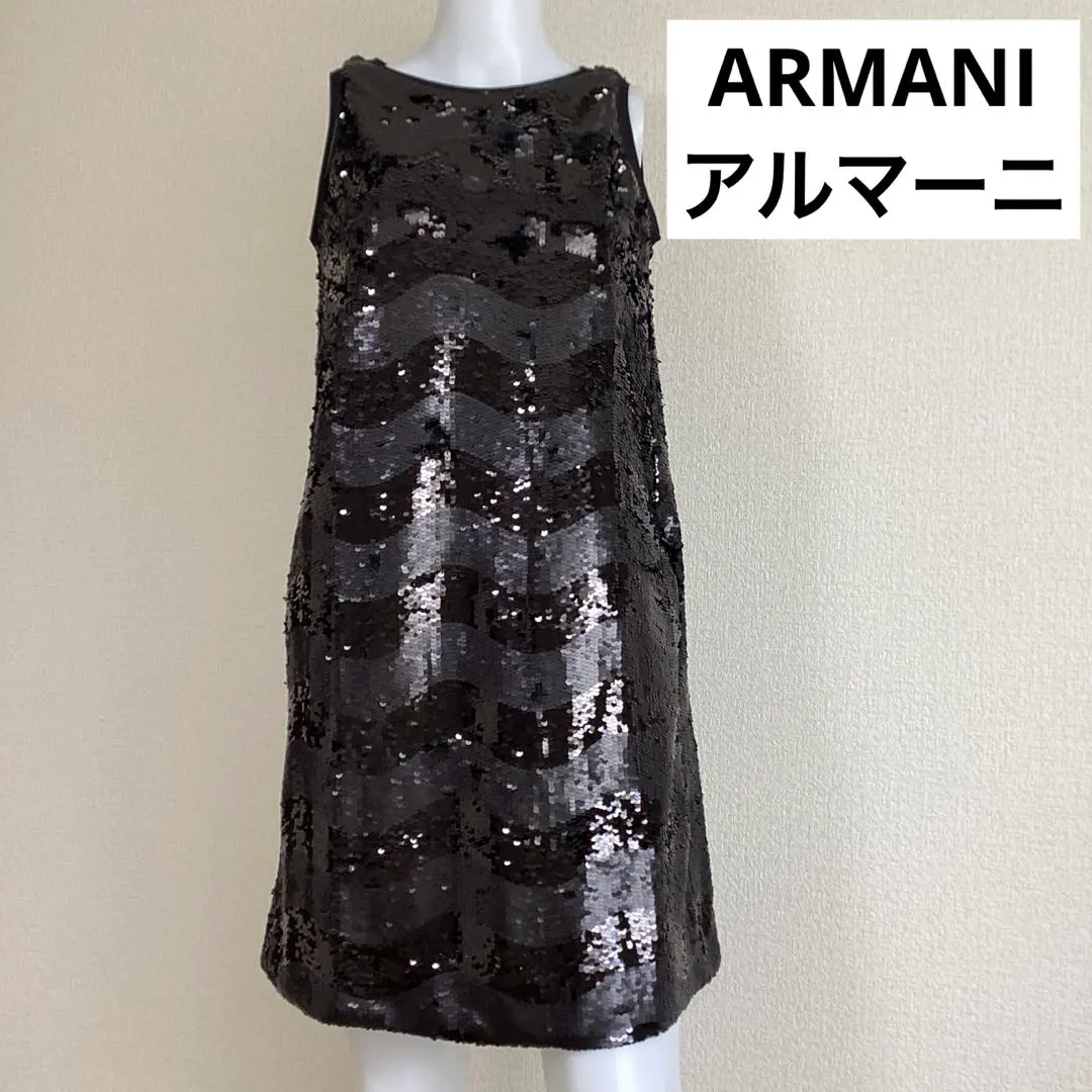 ARMANI スパンコール ミニ ワンピース ドレス 黒 パーティー 二次会