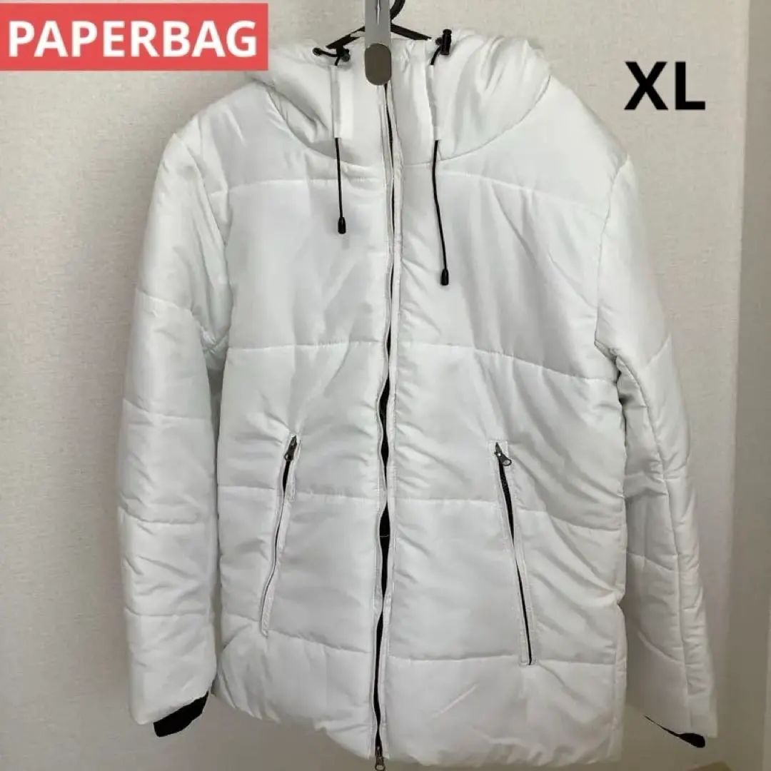 PAPER BAG ダウン 白 XL 撥水 中綿 シンプル かっこいい フード有