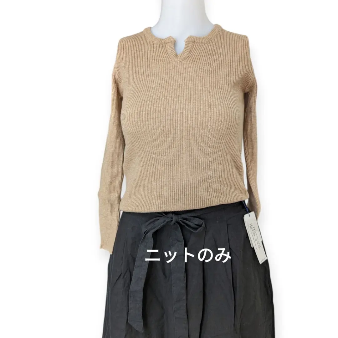 【新品】fifth ニット M キーネック ベージュ 長袖 リブ フィフス