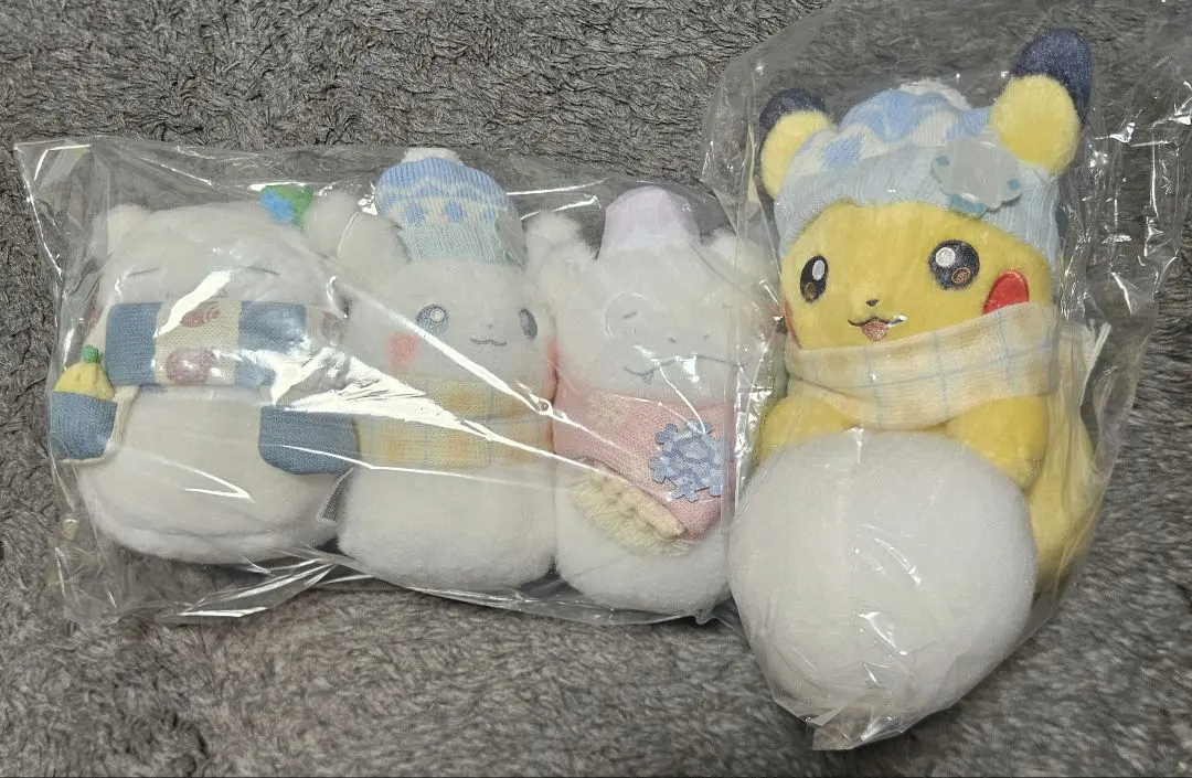 ポケセン ピカチュウと雪あそびぬいぐるみ カビゴン ピカチュウヤドン雪だるまぬい