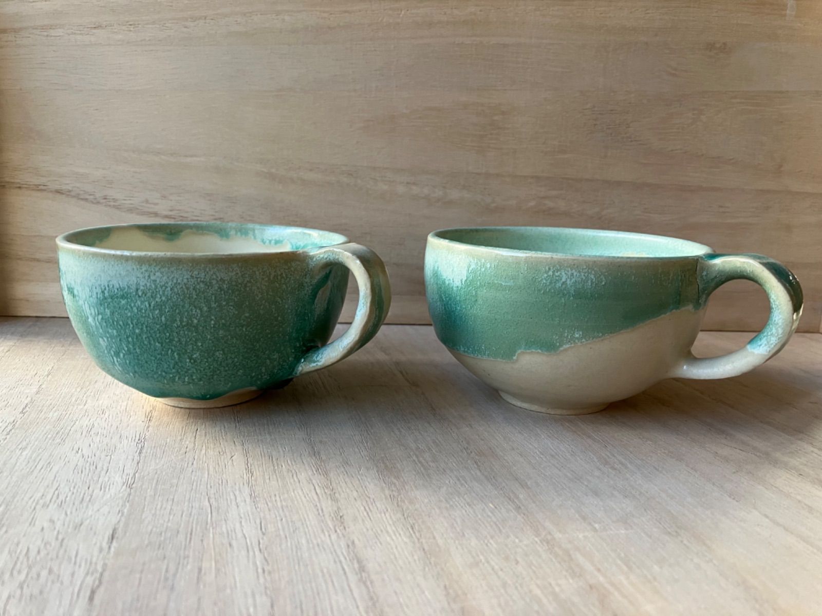 マグカップ グリーン×ベージュ コーヒーカップ カフェオレカップ スープカップ
