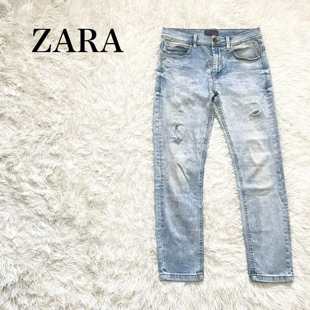 ザラ ZARA MAN ストレッチ スキニーダメージジーンズ L ライトブルー