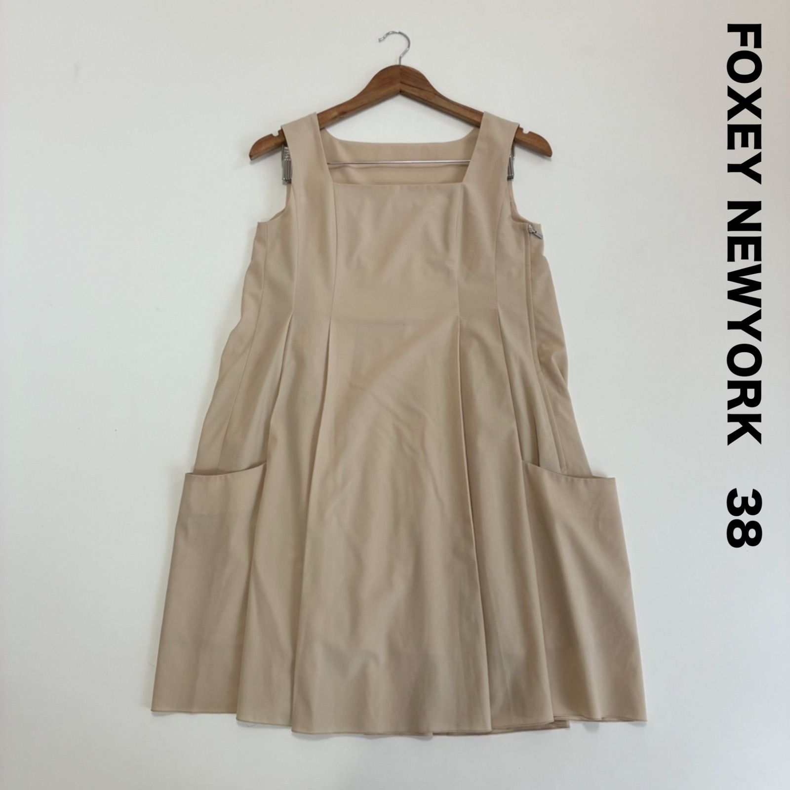 FOXEY NEWYORK フォクシーニューヨーク☆プリーツノースリーブワンピース 38 ベージュ パッチポケット