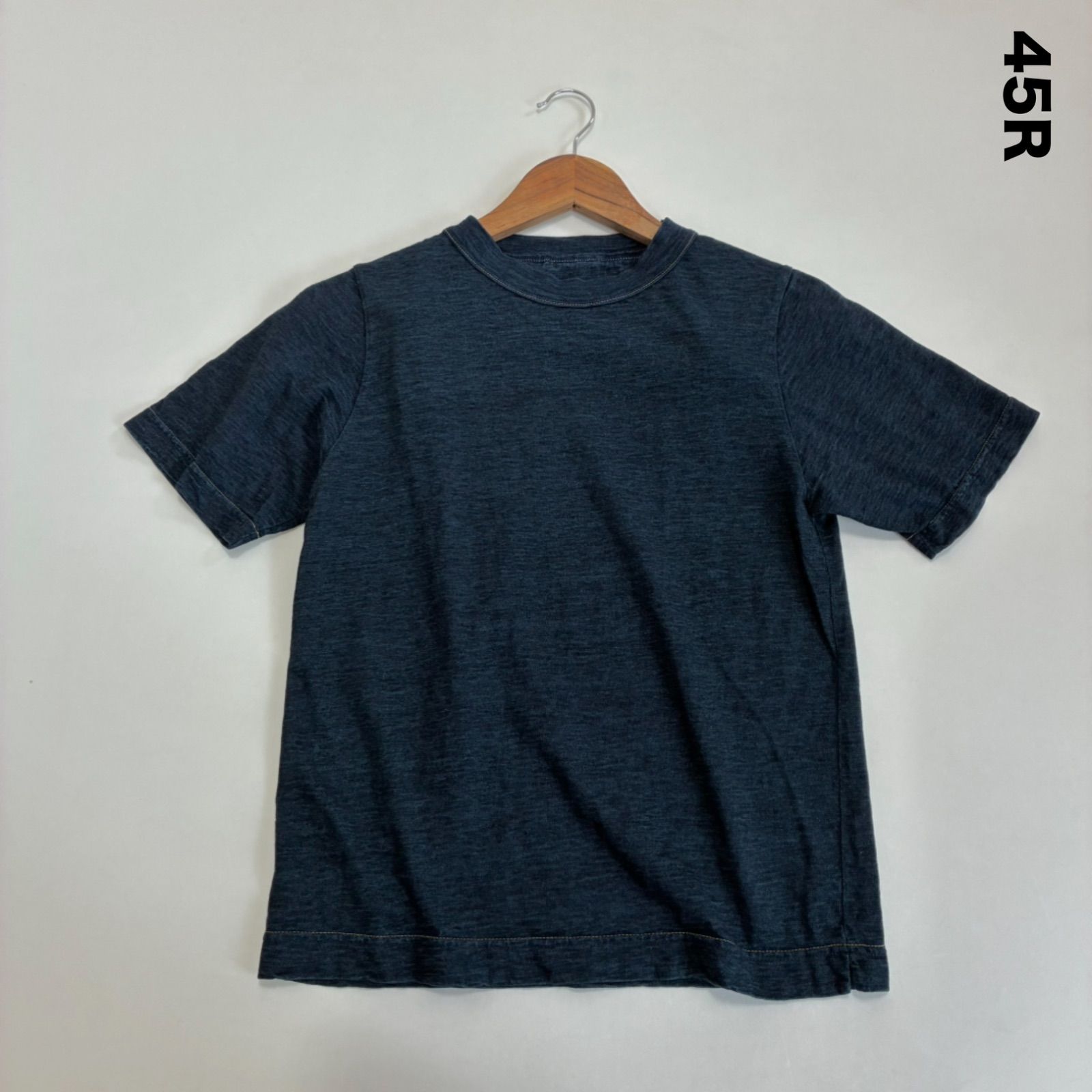 45R☆天竺の半袖Tシャツ ブルー 両サイド裾スリット入り ステッチ