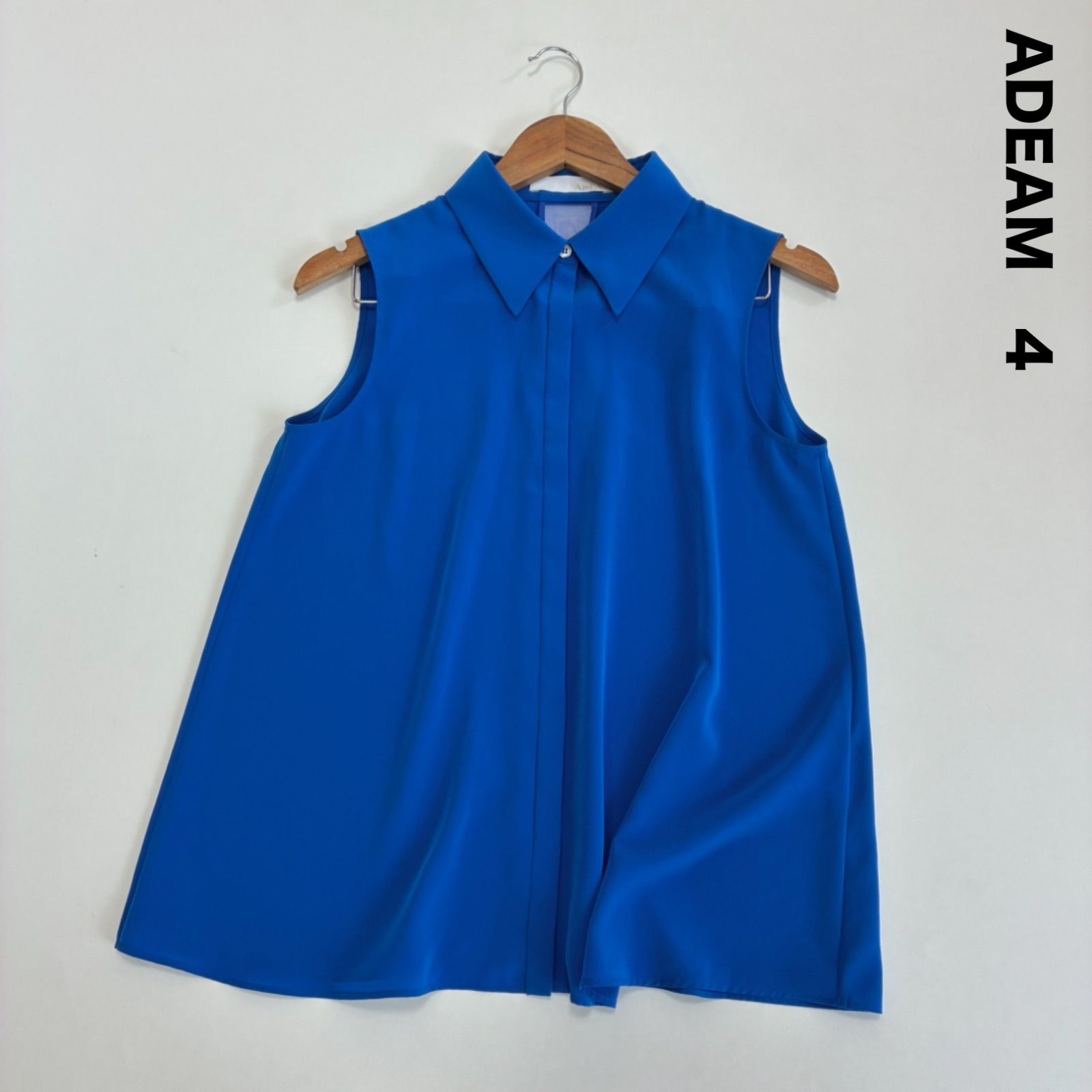 ADEAM アディアム☆後ろシアーライン入りノースリーブブラウス 4 ブルー とろみ エアリー