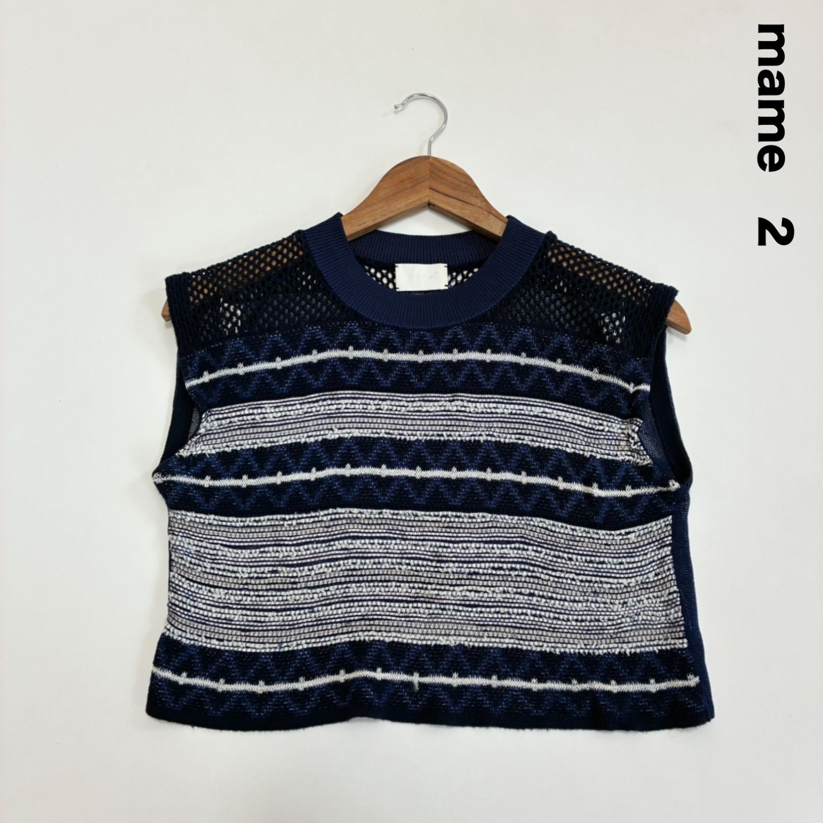 mame マメ ノースリーブニット ブルー系 2 ボーダー 透け感 シアー