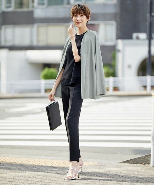 新品 ICB 【洗える】 Unleash ノーカラージャケット 6 ジェイドグレー リネン混 接触冷感 UV加工