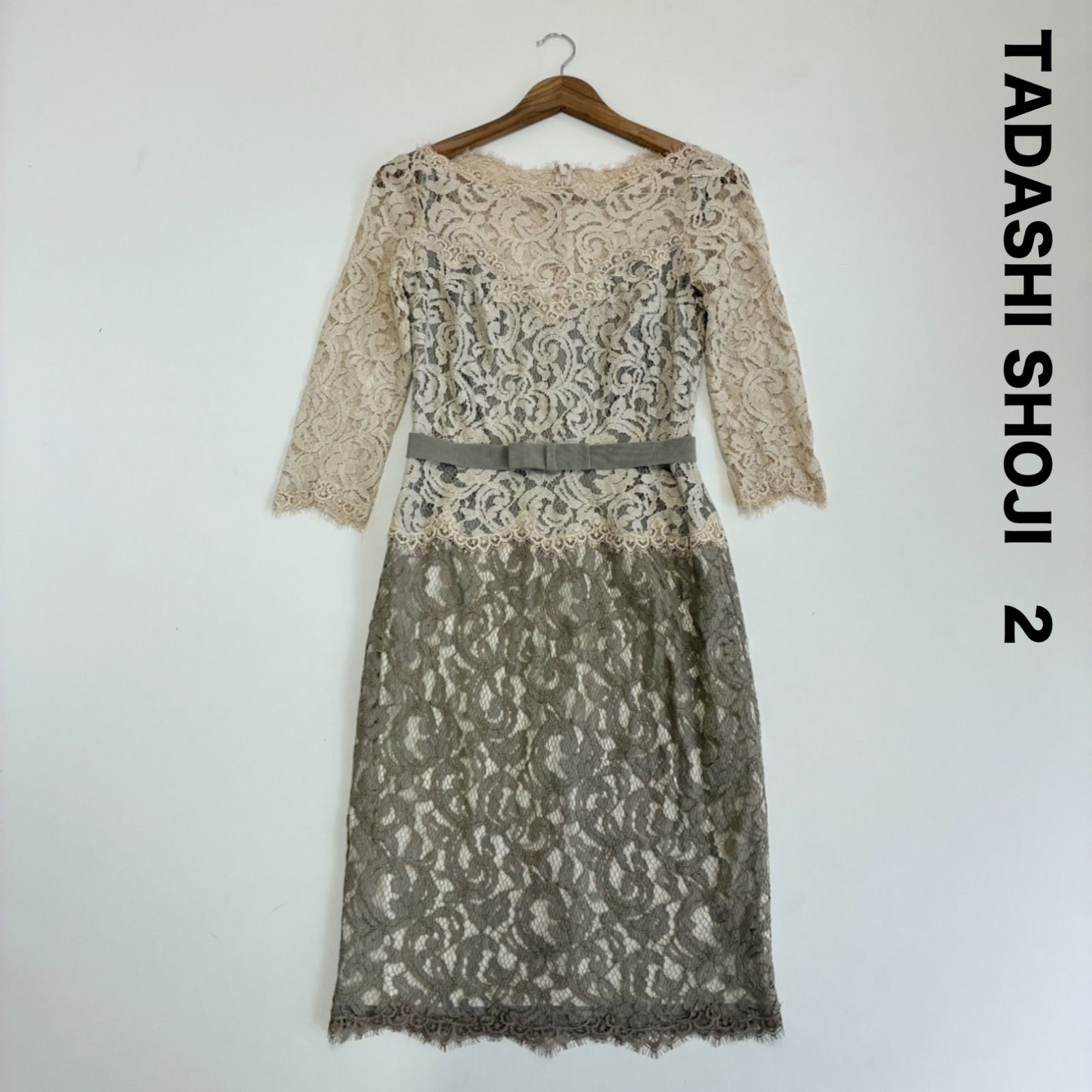TADASHI SHOJI タダシショージ Two-Tone 2トーンレースワンピース 総レース ベージュ系